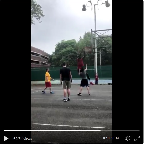 Get out of his way, let him throw down a dunk, take a selfie, and then thank god that he didn’t get hurt on your court.